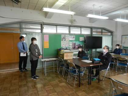 第二小学校では毎年、給食の食材を搬入されている業者の方々と直接、話をする場を設けています。