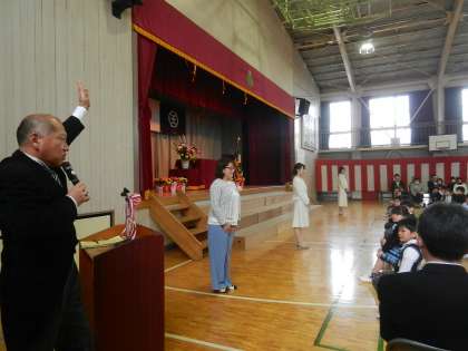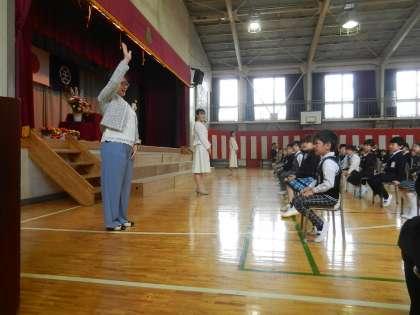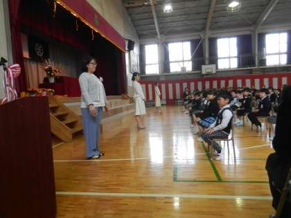 1年1組、1年2組、こだま学級の順で発表します。担任の先生方は呼名されると大きな声でg返事をし、子供たちの前にすすみます。