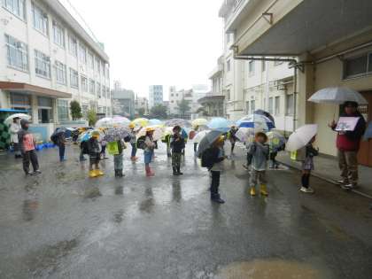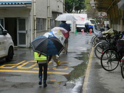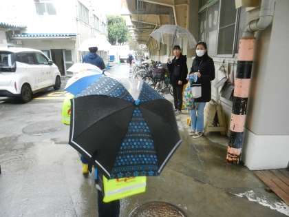 今回は集団下校です。教員が児童と一緒に歩きます。