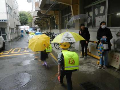 子供たちが下校します。学童保育所に行く児童もいます。