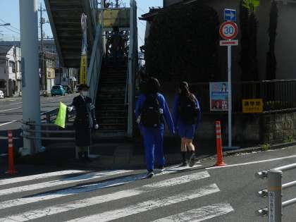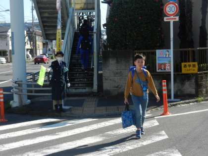 いつものように通学路を歩きます。子供たちの登校の様子を見て回ります。