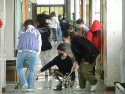 きれいにします。学年が上がると清掃分担も増えます。