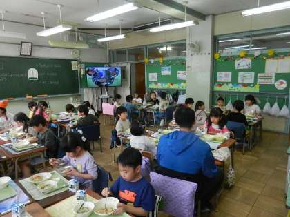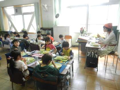 子供たちは、すごくおいしそうに給食を食べます。良かったです。
