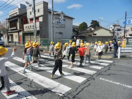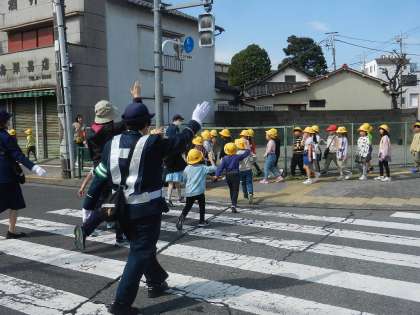 「手を挙げて!」「アイコンタクトが大事だよ(ドライバーの目を見る)。」