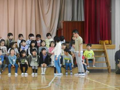 1年生にプレゼントを渡します。
