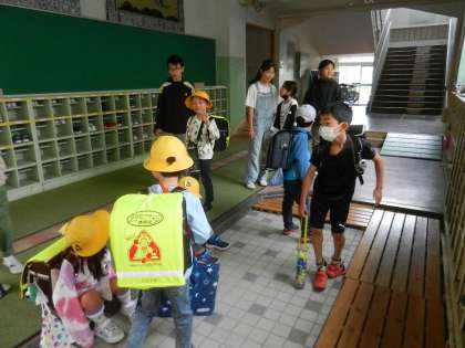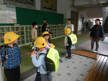 第二小学校では毎学期、朝の挨拶運動を実施しています。校門や昇降口で登校する子供たちに代表委員が声をかけます。