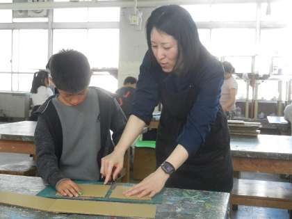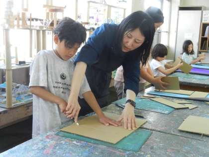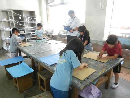 時には見本を見せながら、子供たちに指導します。子供たちは目の前の見本を見ながら道具の使い方を知るので、自信がもてます。