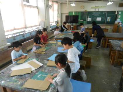 第二小学校では図工担当の先生が、第1学年から図画工作の授業を受け持っています。