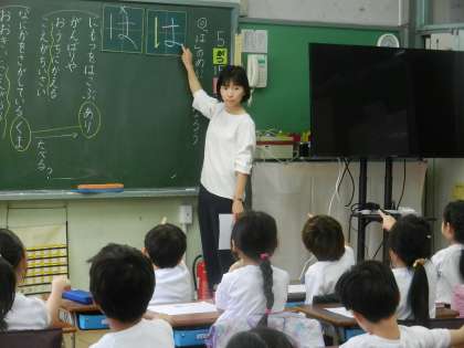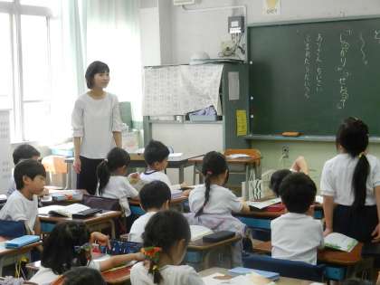 音読をします。先生が始めに読みます。子供たちが続けて読みます。
