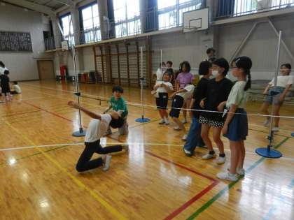 校舎内に放送が流れます。子供たちは思い思いに校庭や体育館に急ぎます。
