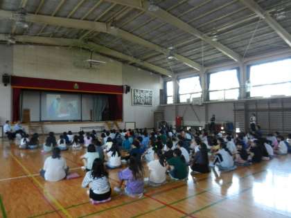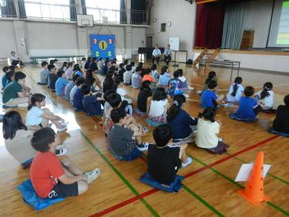 体育館でセーフティ教室を実施しました。4・5年生を対象としたセーフティ教室です。