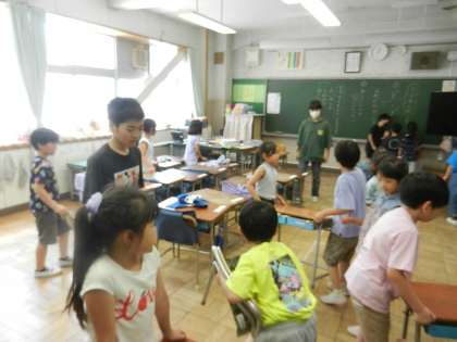 6年生と2名の大人が、1年生をサポートします。手厚いですね。