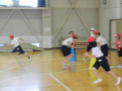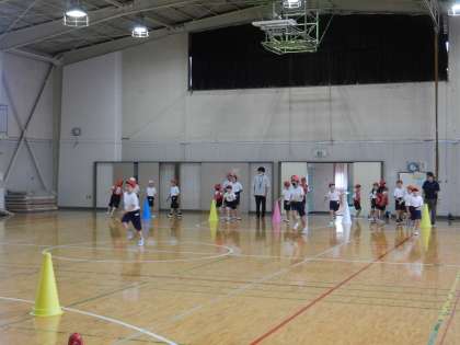 順番を守ること、次走者へはバトンの代わりにタッチをすること、まっすぐに走ること、セーフティコーンの手前でスピードを落とし回ること等、学習内容がたくさんあります。