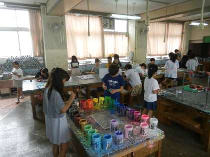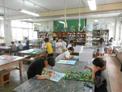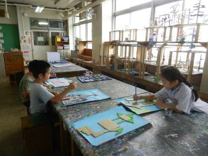 図工室の様子です。3年1組が図工の学習中です。「王様のおしろ」です。