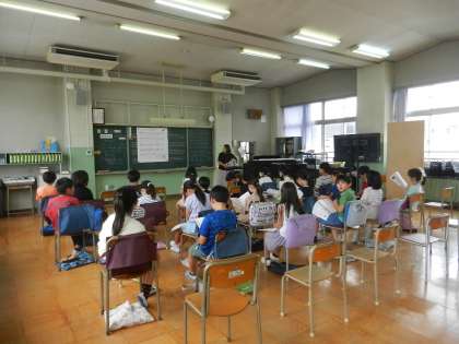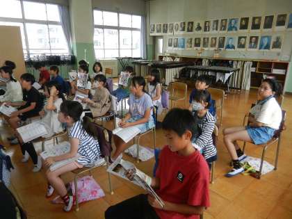 音楽室の様子です。4年1組の子供たちが学習中です。