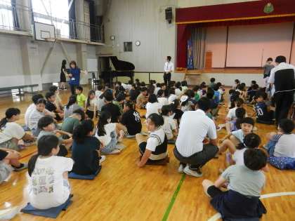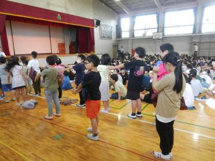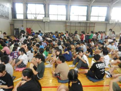 7月17日・水曜日、午前8時40分です。体育館に全校児童が集まります。
