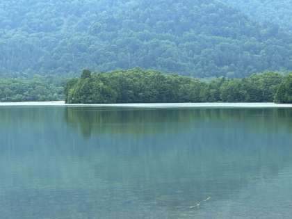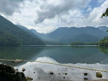 湖面に奥日光の山々が映ります。