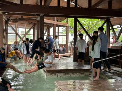 ミニハイキングの疲れを足湯で癒します。
