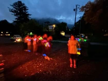 子供たちが付けている蛍光ライトが幻想的です。