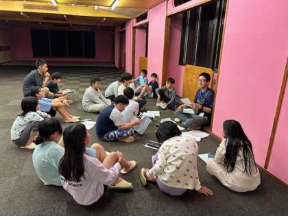 午後9時です。大広間に室長、実行委員が集まります。