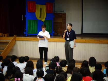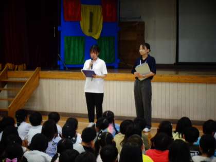 栄養教諭の実習を行う2名の大学生です。4年1組、6年1組を中心に実習を行います。