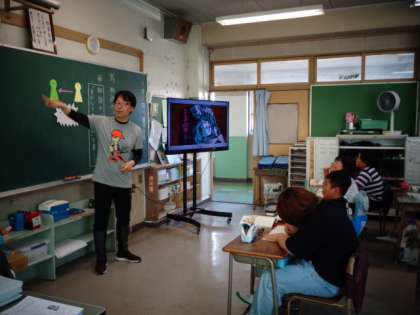 担任の先生はすごく穏やかです。子供たちと会話をしながら授業を展開します。