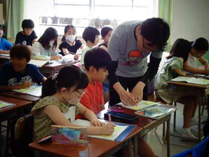 机間指導を何回も行います。子供たち一人一人に寄り添い、丁寧に指導をします。