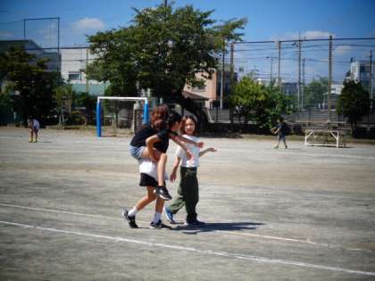9月5日・木曜日、昼休みです。清掃時間終了のチャイムが鳴ると、子供たちは急いで校庭へ出ます。昼休みの始まりです。