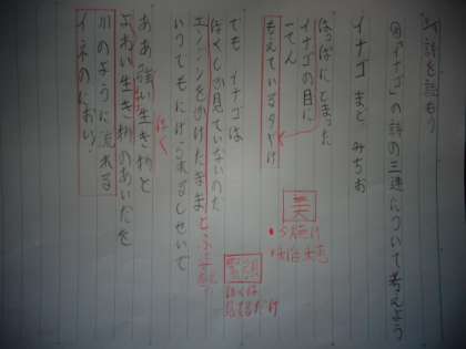 「詩」の学習です。まどみちおさんの「イナゴ」について学習しています。