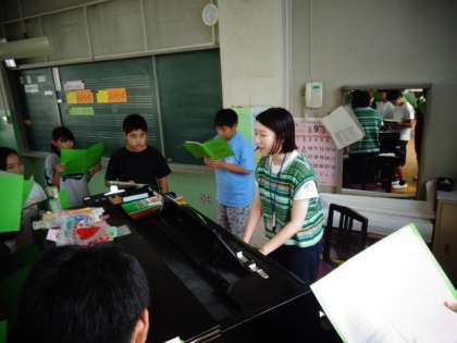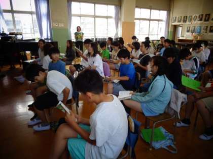 音楽室です。6年生が合唱の学習中です。