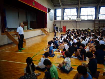 昨日は水泳指導があったので、全校朝会が火曜日になりました。