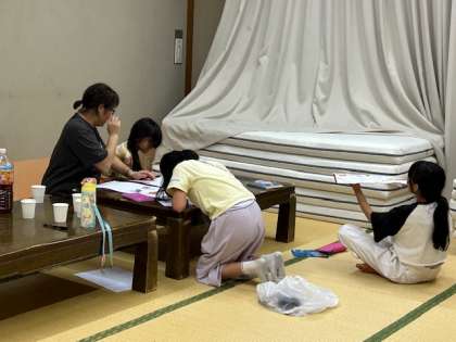 絵日記を描き終わったグループは、就寝の準備です。