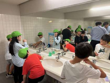 食事の後は、歯磨きです。口の中をスッキリさせます。1本1本、丁寧に磨こうね。