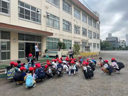 9月17日・火曜日です。午前8時20分です。中庭に子供たちが集まります。
