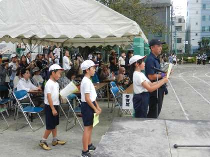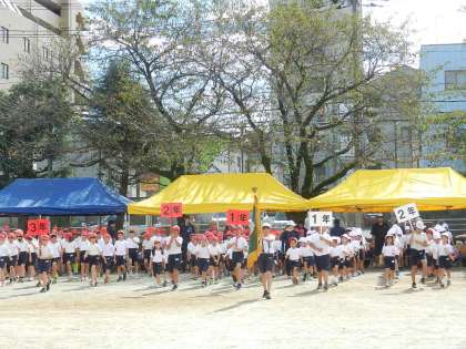 全校児童が入場しました。いよいよ閉会式が始まります。