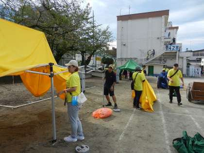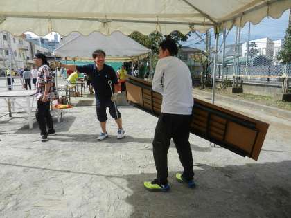 黄色のTシャツを着ていないけどお手伝いをしてくださっているのは、保護者や地域の方々です。皆さんの協力のおかげで片付けはスムーズに進みました。