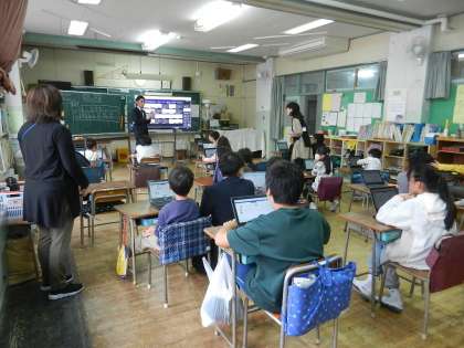 1年生から6年生までの児童が在籍しています。子供たちが同じように学ぶために、タブレット端末を活用し、ゲーム的要素も取り入れながら学習をすすめます。