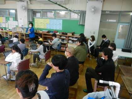 こだま学級はタブレット端末を活用しながら考えます。