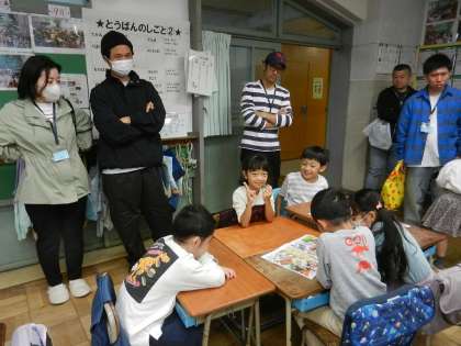 学習の最後は、イラストを見ながら「危険なこと、場所、もの、人」をさがします。