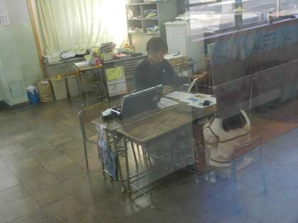 視力、聴力、眼科、耳鼻科、歯科、内科と健診等を行います。その後、教員との面接を行います。子供たちは緊張しながら、名前を伝えたり、教員からの質問に答えたりしていました。