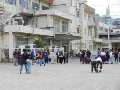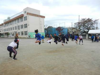 せんべい食い競争、大縄跳び、二人三脚リレー。