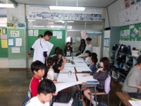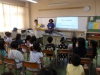 1,2年生の外国語活動では、大学生のボランティアのお兄さん お姉さんと一緒に勉強...