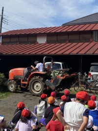 農家さんがいろいろ教えてくれましたトラクターを見せていただき 収穫した野菜をつか...