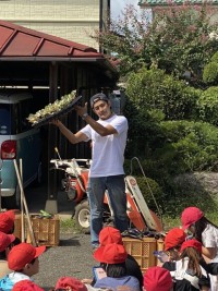 三年生がバスに乗り農家見学へ行きます。よい天気になりました。たくさん見て聞いて学...