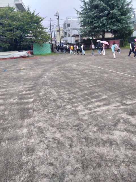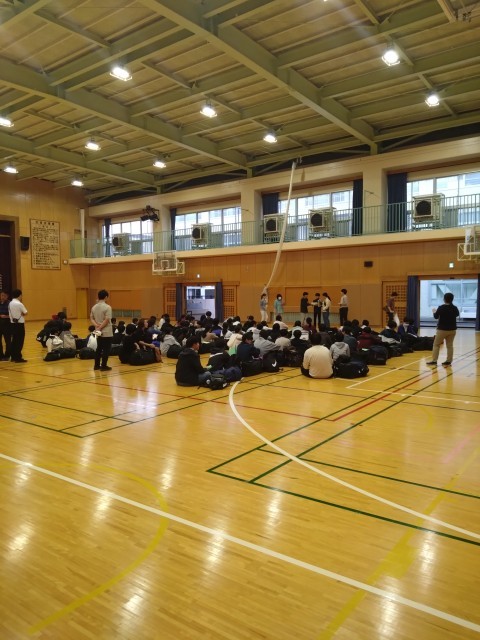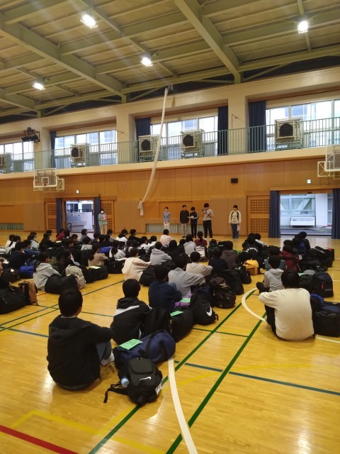 1年生は、体育館で出発式をして、予定通り学校を出発しました。