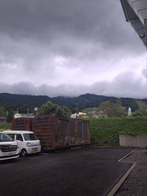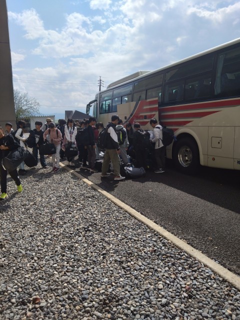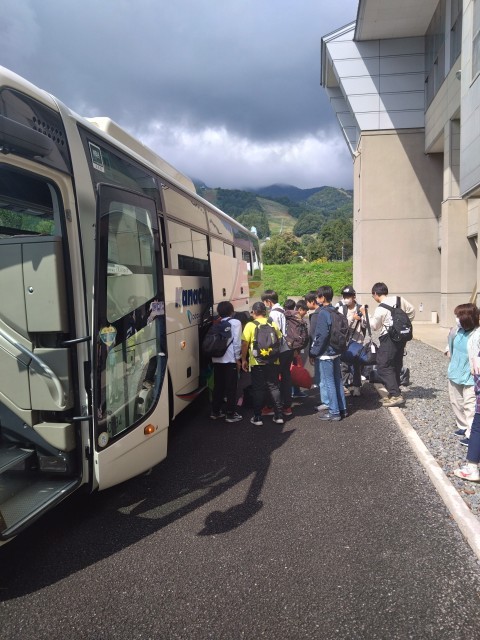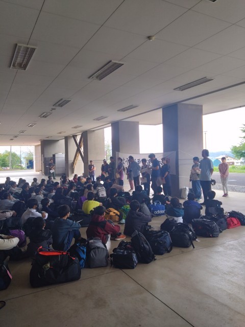 戸狩に到着しました。開校式終了後、各宿舎へ移動しました。天候も到着当時は、少し晴れ間も見えましたが、移動する頃には、雨模様になってしまいました。