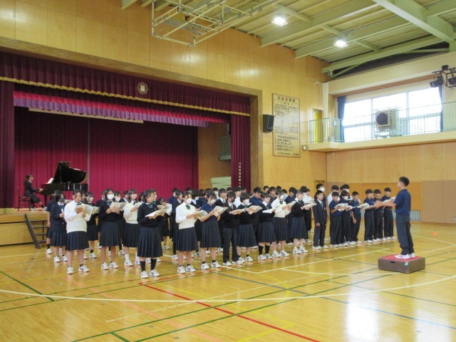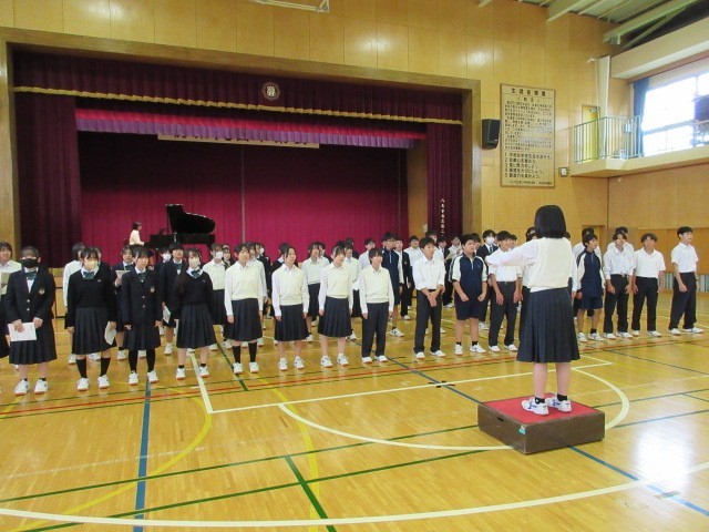 合唱の学年練習と10月9日(木)の朝練習の様子です。