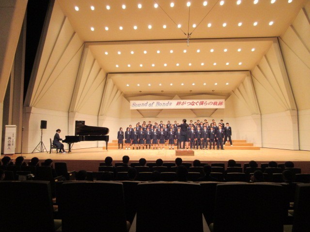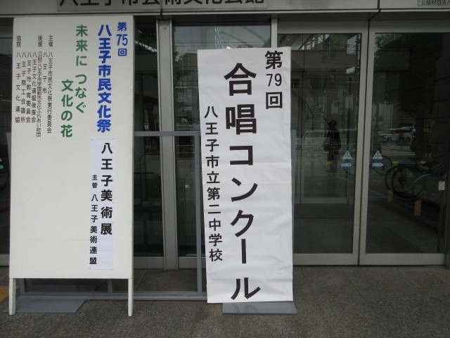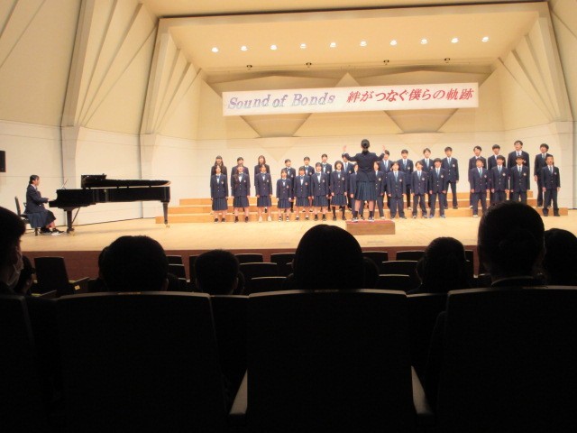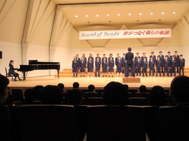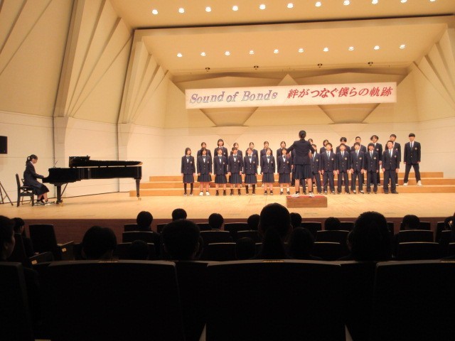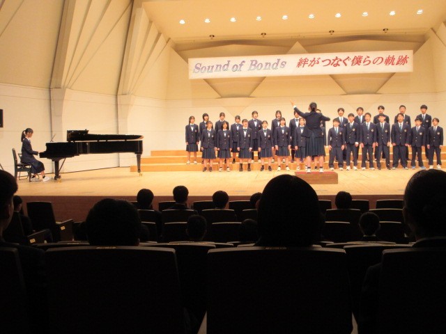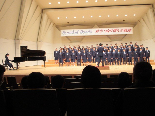 10月21日(火)に「いちょうホール」で合唱コンクールを行いました。どのクラスも練習の成果がよく出ていました。午後の部では、5組の合奏、創作ダンス(保健体育の授業で行った)、吹奏楽部の演奏が行われました。午後の部も練習の成果が出ていてとても立派な発表でした。また、ポスターもじょずに描かれていました。