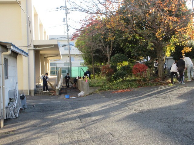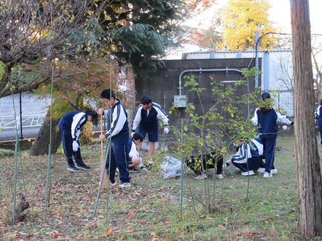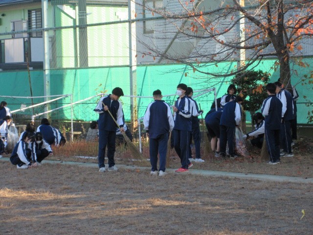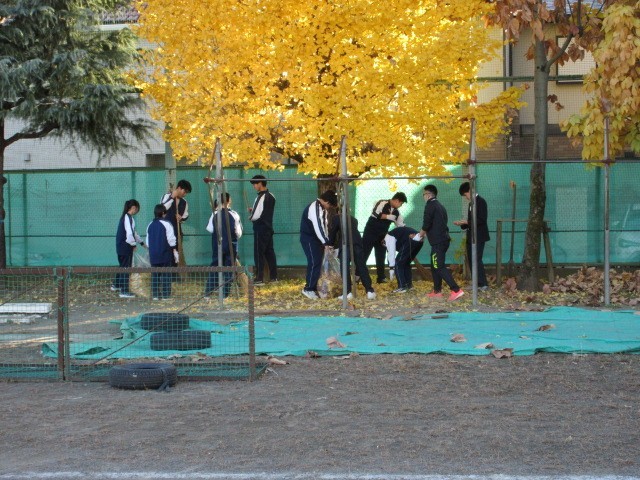 11月28日(金)の午後に全校生徒で、校庭の落ち葉掃きに取り組みました。週末で疲れているにもかかわらず、みんな一生懸命に取り組んでくれました。ありがとう!!