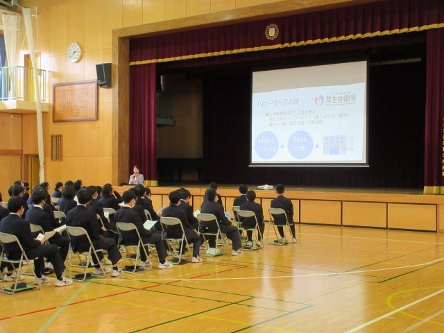 2月12日(木)の6校時にハローワークの方を講師にお迎えし、職業の適正への自己理解についてお話をしていただきました。